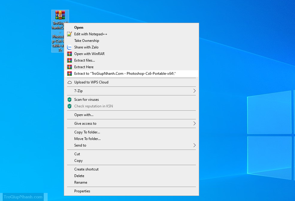 Sau khi đã tải và bộ Photoshop Cs6 Portable về máy tính, các bạn hãy giải nén nó ra bằng cách nhấn chuột phải vào file và chọn Extract to”….”