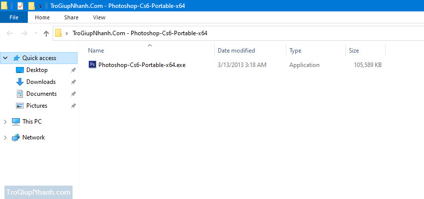 Nhấp đúp chuột vào file PhotoshopCS6Portable.exe để mở chương trình Photoshop Cs6 lên