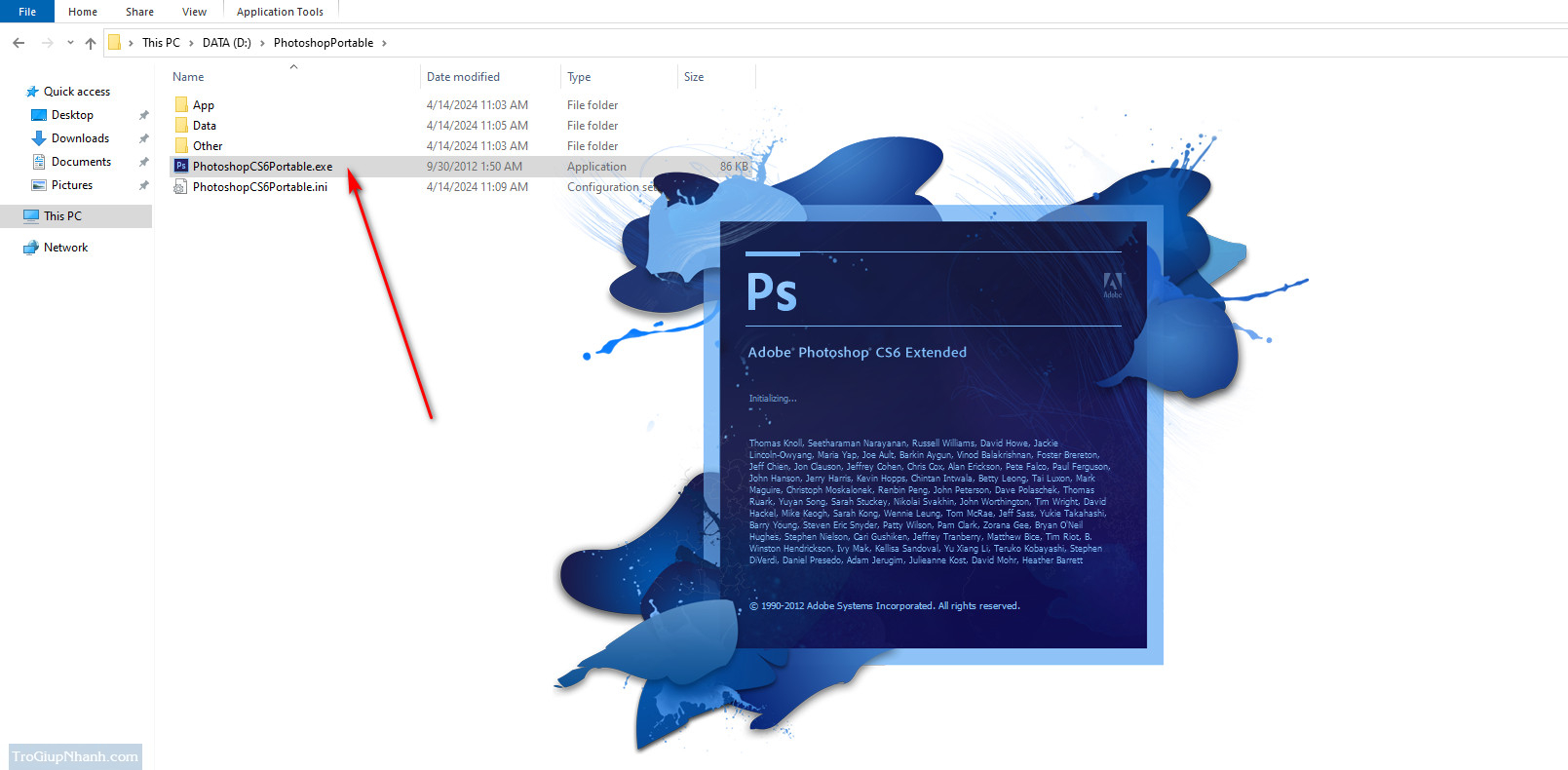 Giải nén và cài đặt Photoshop Cs6 Portable